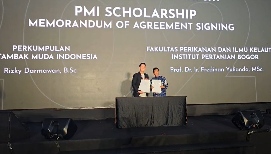 Pada hari Kamis, 22 Mei 2025, telah dilaksanakan penandatanganan Memorandum of Agreement (MoA) antara Perkumpulan Petambak Muda Indonesia dan Fakultas Perikanan dan Ilmu Kelautan Institut Pertanian Bogor (FPIK IPB). Penandatanganan ini merupakan langkah awal kerja sama strategis dalam bidang pendidikan, khususnya terkait pemberian beasiswa kepada mahasiswa FPIK IPB.